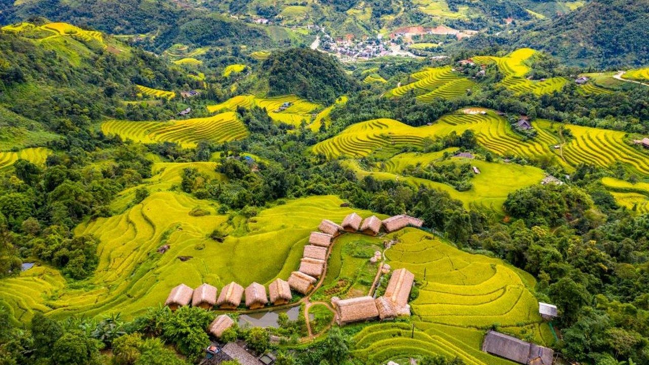 Một điểm du lịch tuyệt đẹp của Hà Giang, với ruộng bậc thang và không khí trong sạch của núi rừng, phong cách vùng cao đáng nghỉ chân