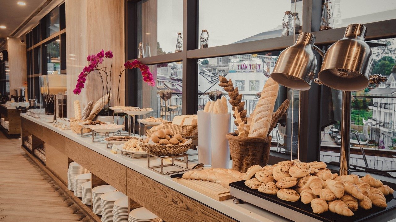 buffe sáng ngon oke, chỗ đậu xe rộng rãi thoáng, thích hợp đi oto mà không sợ đậu ngoài không có người trông coi