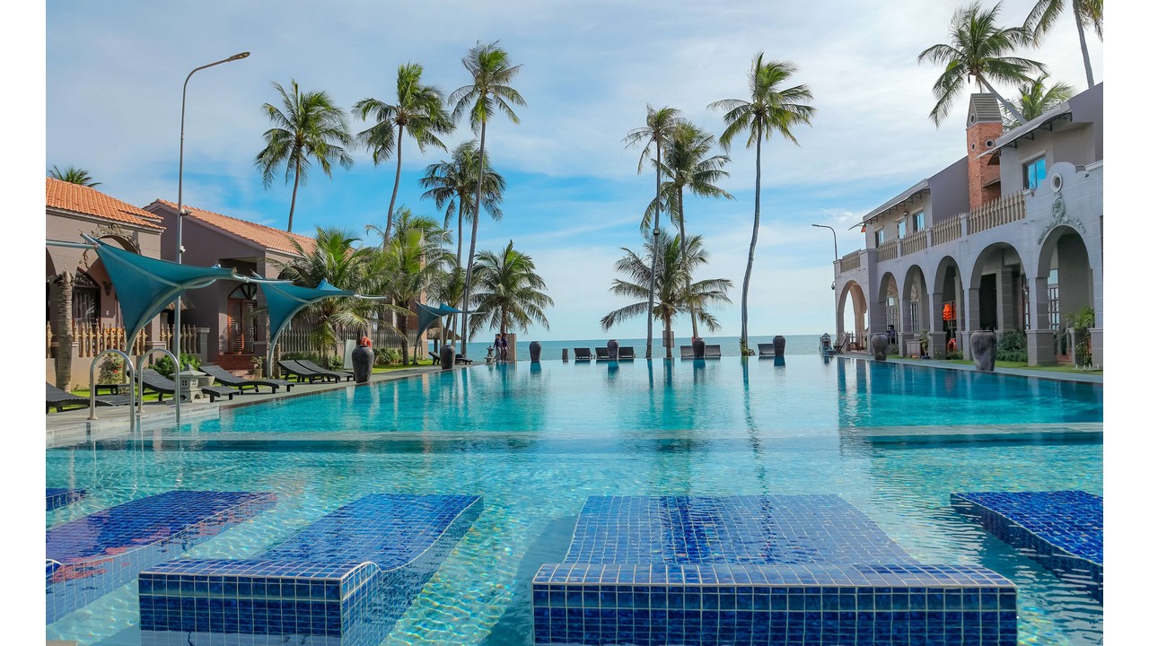 Hồ bơi đẹp, resort sát biển sáng dậy nghe tiếng sóng biển rất chill, phòng thoáng mát sạch sẽ , có khu vui chơi cho trẻ em, buffet sáng ngon.
