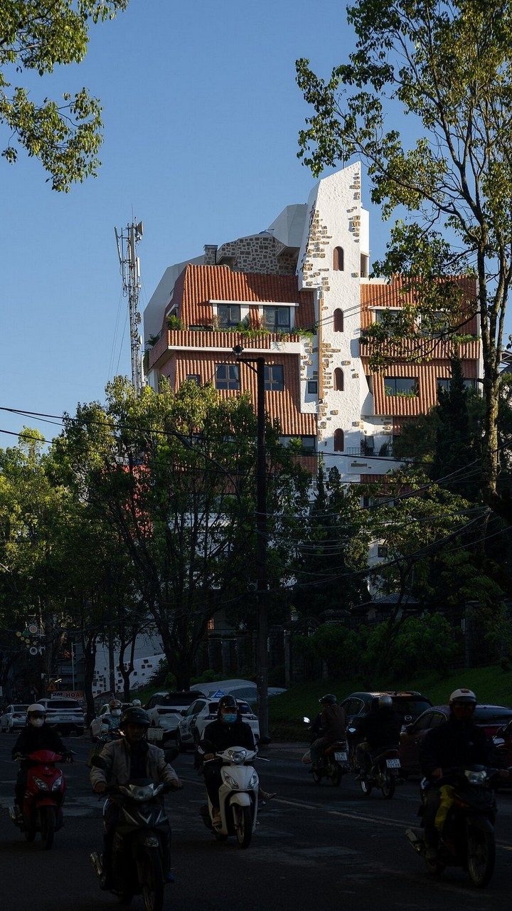 Nằm trên con đường Phù Đổng nổi tiếng nhìn về khu rừng thông đại học Đà Lạt, một con dốc mòn nhỏ ôm trọn lấy một công trình đặc biệt, tựa như vòng tay ấm áp của địa hình cao nguyên đang nâng niu một chút gì đó rất Đà Lạt. Trong mỗi căn phòng, những mảng tường dày với các đường cắt thô kệch, cùng với các vách gỗ không được thẳng thớm cho ta cảm giác như đang ở trong một căn nhà trên cao nguyên Lâm Viên từ những ngày xưa cũ. Cát suối được mài theo kỹ thuật terrazzo từ phòng vệ sinh tràn ra ô cửa với các khóm cây tùng núi, hương thảo,… tỏa ra mùi thơm để kháng lại cái lạnh. Bên cạnh cửa sổ là chiếc thảm tập yoga được đặt sẵn hay một tập giấy vẽ đang chờ bạn để cho tâm hồn mình thư giãn mỗi buổi sớm mai. Chúng tôi gọi công trình đó là Mùa Wellness bởi nó hướng đến những giá trị về sự tinh dưỡng và chữa lành, giống như việc thay đổi thời tiết lẫn tâm trạng là lý do mà đại đa số du khách tìm đến Đà Lạt