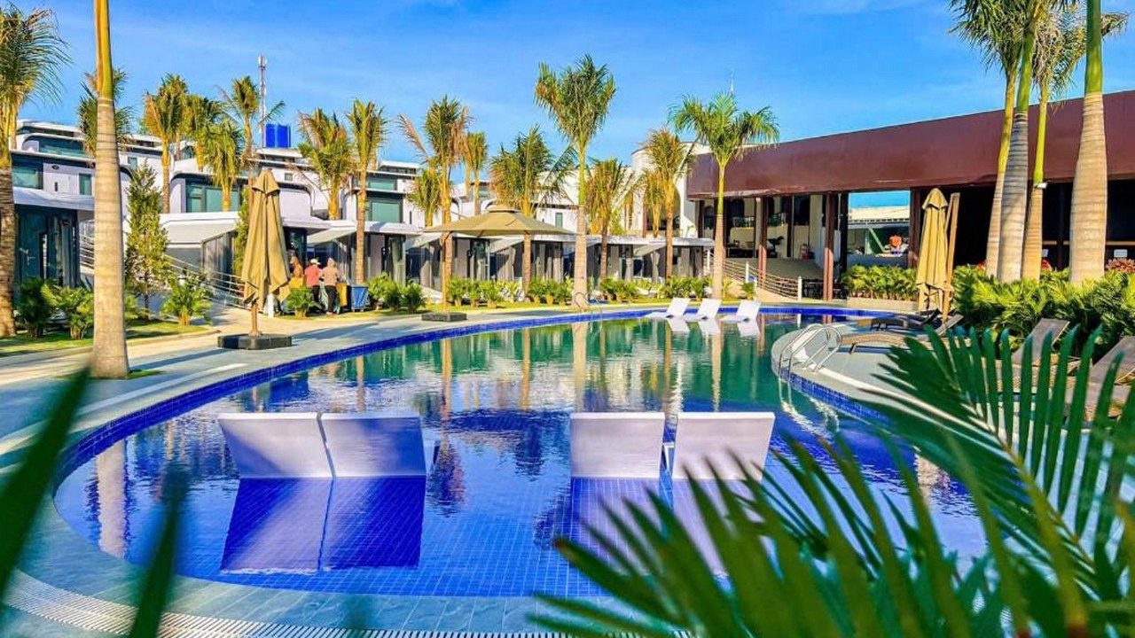 Resort mới xây nên đẹp lắm, giá cả cũng oke nữa. Trước mặt có bể bơi sâu nhất là 2m. Cạnh có quán cà phê, đằng sau có bi-a, bắn cung. Ở đây thấy oke phết.