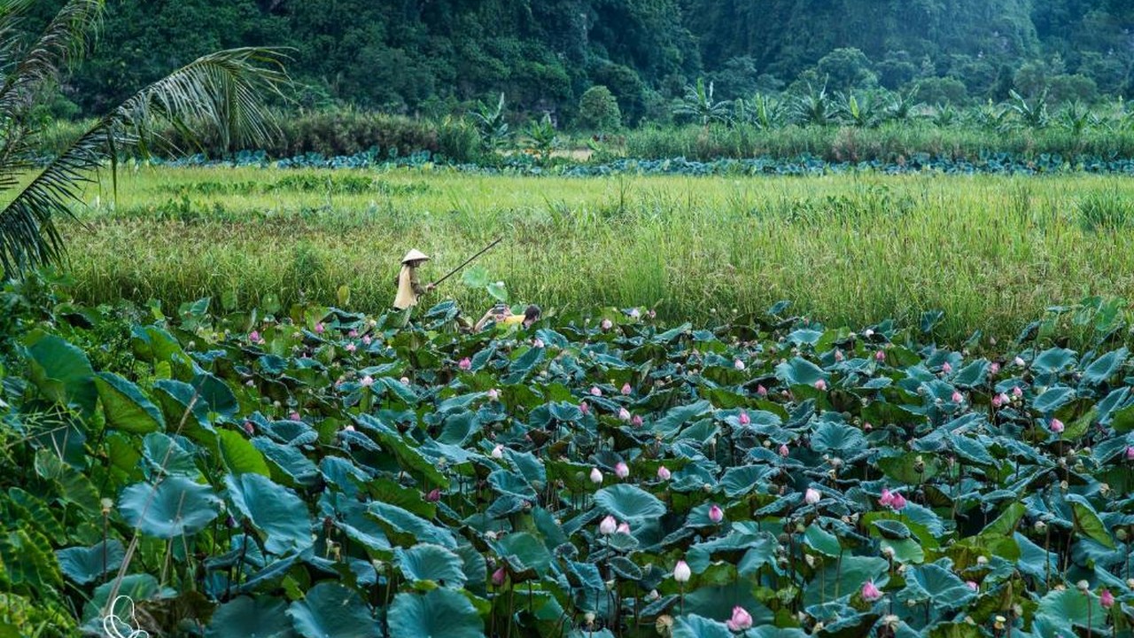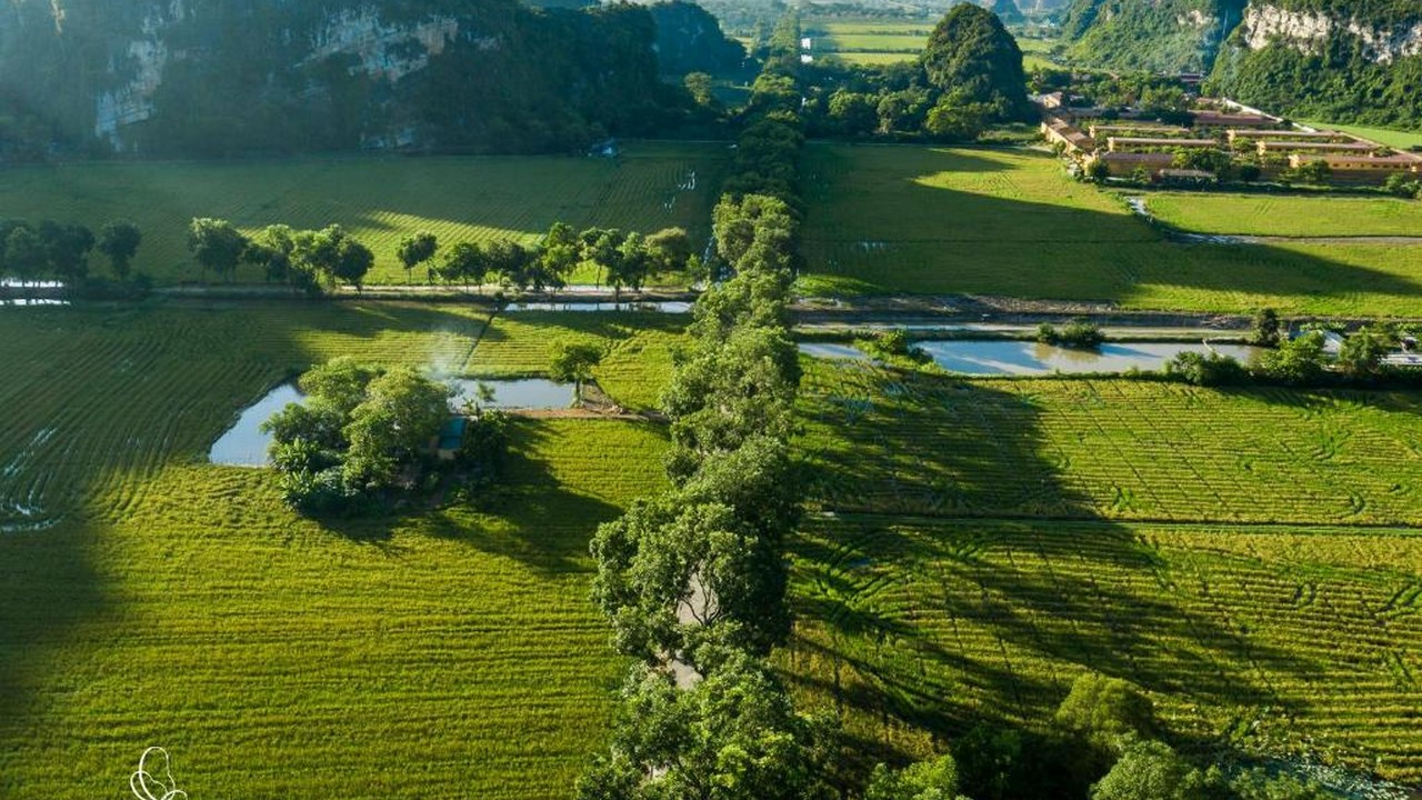 Không gian làng quê yên bình tuyệt vời ,ở giữa những ruộng lúa soi bóng núi đá vôi